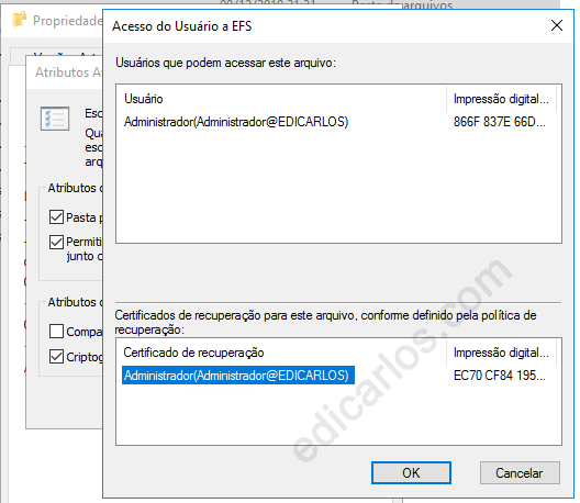 Criptografando arquivos com EFS (Encrypting File System):