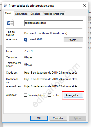 Criptografando arquivos com EFS (Encrypting File System):